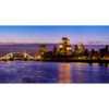 A stunning photograph taken from across the river Thames of the City of London at dusk in early April 2025.This image can be enlarged to any size required. It has been shot in sections and stitched to form a panorama with a very high resolution .  Chromaluxe print size 140 x 80 cm price £2000 and a canvas 100 cm x 60 cm £420 currently on view in the gallery, call for further info on +44 (0)7738 715354.