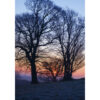Photograph taken from near Iden, East Sussex, the sun rising over distant Romney Marsh showing through the bare winter trees.